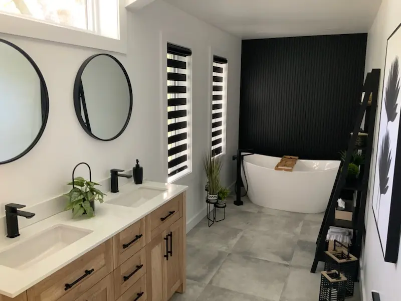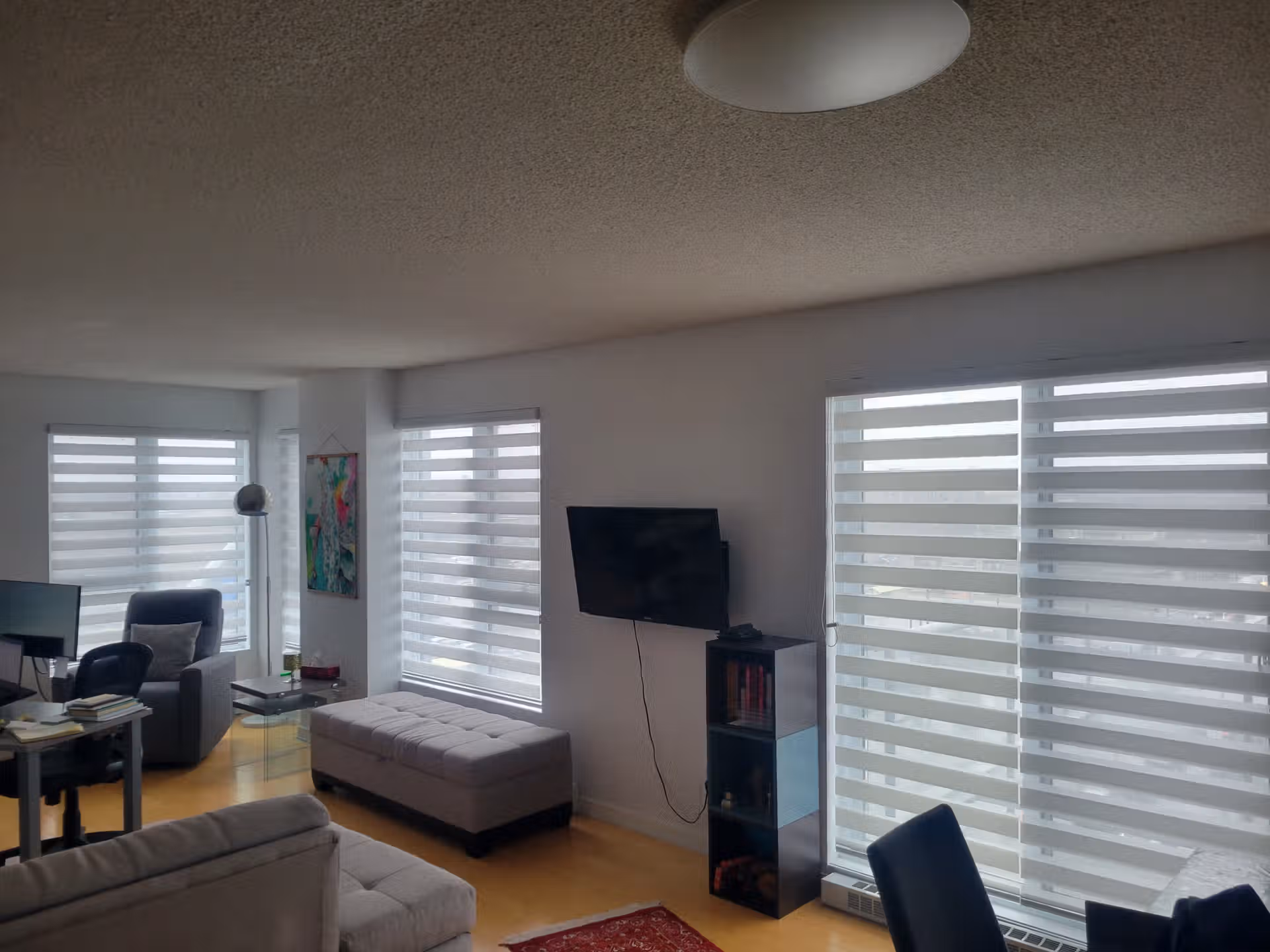 Day and night blinds provide adjustable light control with sheer and opaque panels, blending style and functionality.