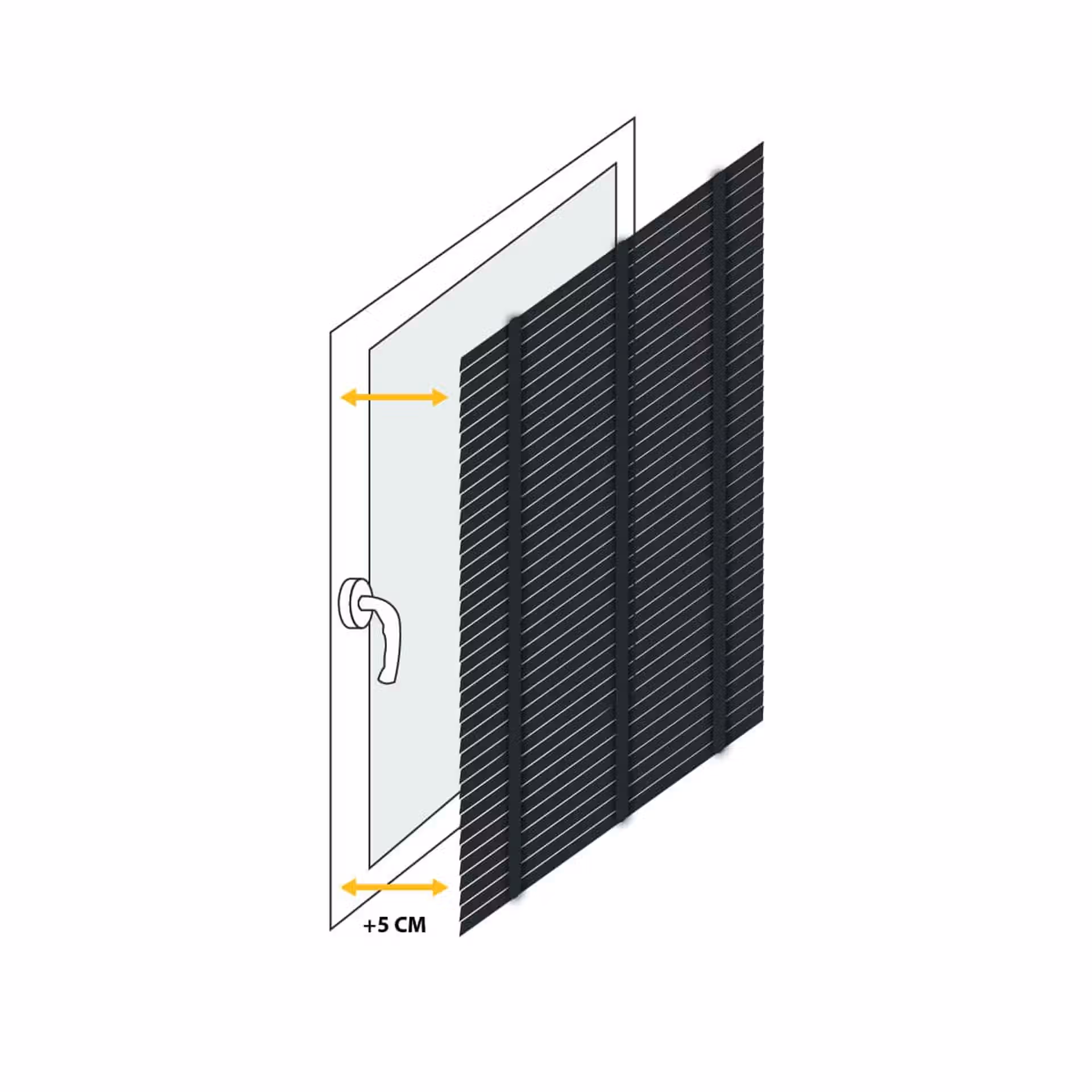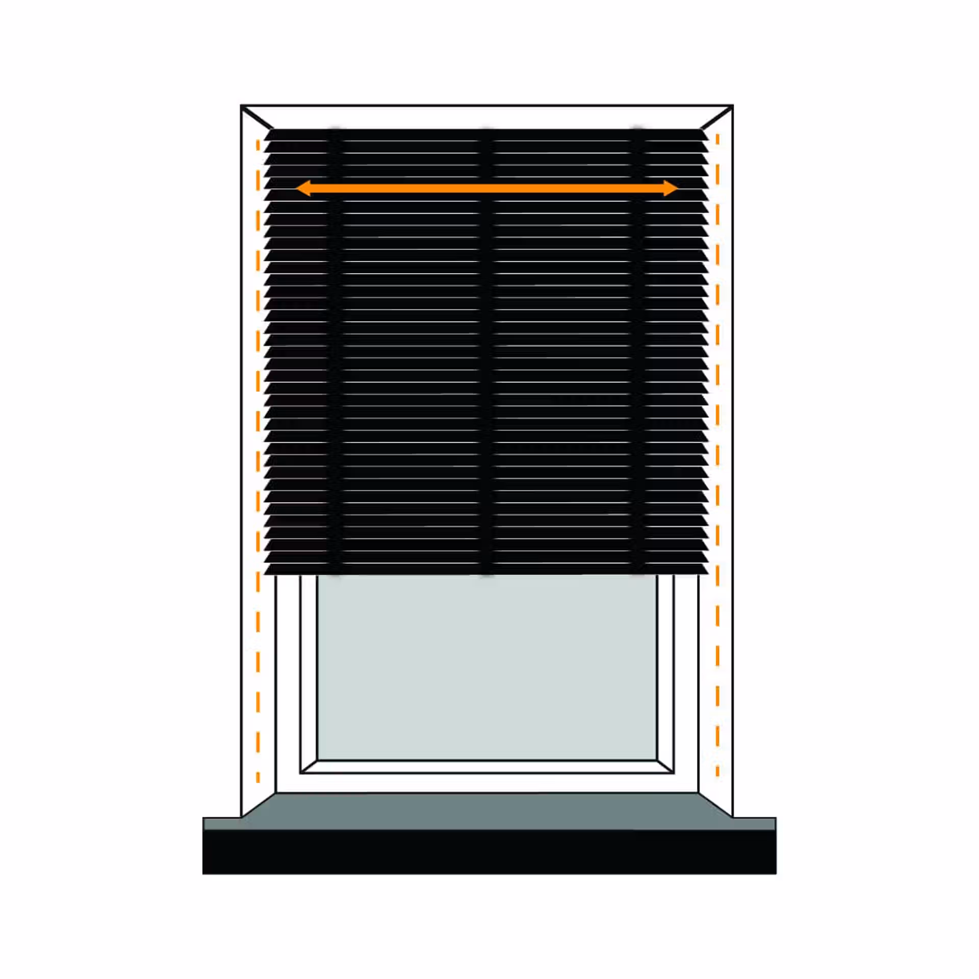 Determine the desired amount of overlap for your blind on both sides of the window recess, and measure this width accordingly. Keep in mind that due to the chain control and brackets, the fabric will be 35mm narrower than the specified size.
